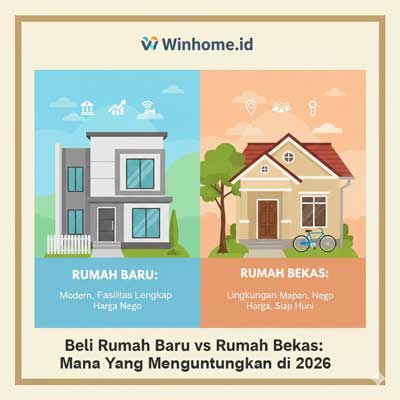 Bagi Anda yang sedang mencari hunian di Winhome.id, pertanyaan ini pasti sering muncul: “Lebih baik beli rumah baru dari developer atau cari rumah bekas (second)?”. Keduanya memiliki kelebihan masing-masing, namun pilihan terbaik sangat bergantung pada kebutuhan dan kondisi finansial Anda.